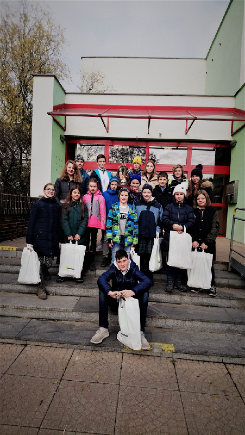 Dne 3. 12. 2019 si úspěšný tým plavců naší školy, kteří zvítězili v XXIV. ročníku Dětských plaveckých závodech o putovní pohár starosty m. č. Praha 14 v plaveckém stadionu v Hloubětíně, převzal pohár, diplom a ceny. Předání proběhlo v zasedací místnosti budovy ÚMČ Praha 14 panem starostou. Všem skvělým plavcům moc děkujeme za účast a blahopřejeme.