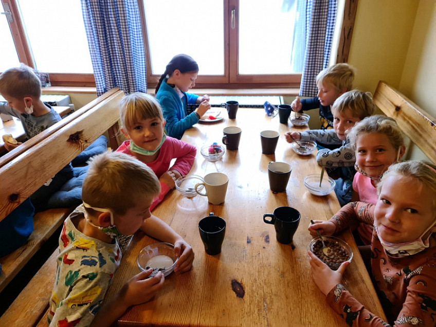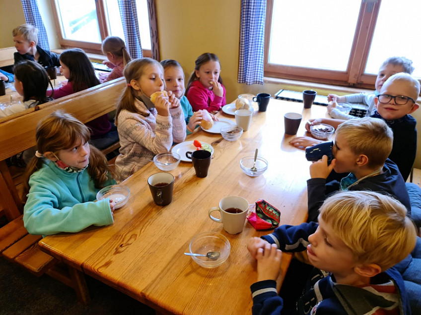 Večer jsme s dětmi absolvovali noční tajnou výpravu za Krakonošem. Děti byly plné odvahy a nadšení.