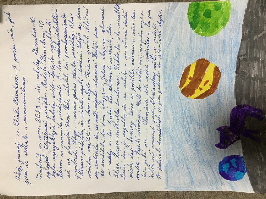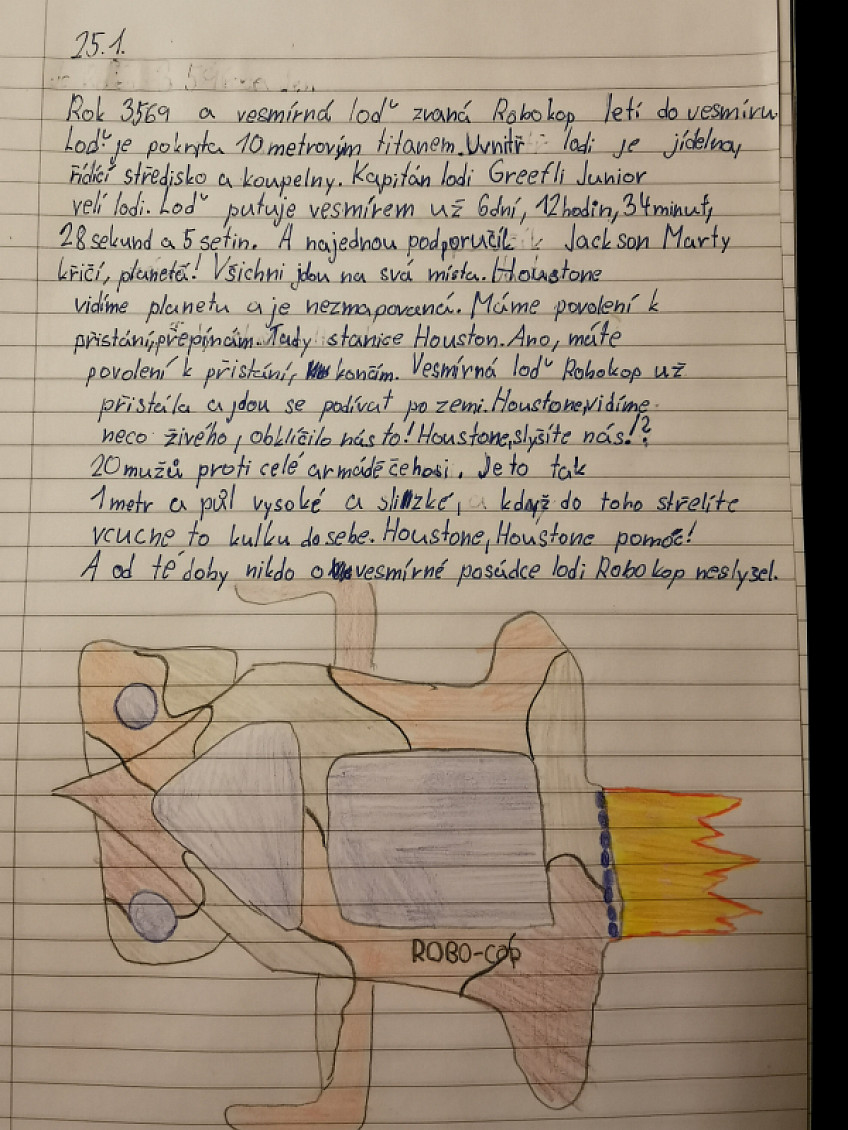 Ukázka několika žákovských prací v době distanční výuky ze tříd 5. A a 5. C.