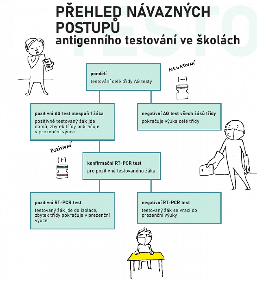 V případě pozitivního výsledku testu, rodič si své dítě odvede domů. Škola musí pozitivní výsledek testu hlásit hygienické stanici, která určí další postup - termín PCR testu; zároveň dostanete písmené potvrzení o pozitivním výsledku antigenního testu ve škole.