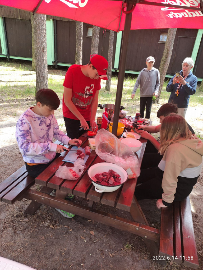Třída 8.A se utábořila u Máchova jezera. Aktuálně probíhá soutěž v přípravě skvělého guláše. Jak to dopadne s prsty kuchařů? Bude to k jídlu? Nechte se překvapit....