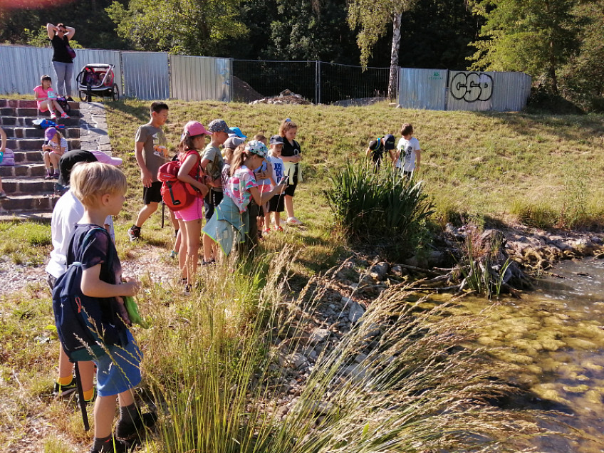 Žáci 3. B vyrazili na dopolední vycházku po okolí Prahy 14. Sešli ke Kyjskému rybníku, prošli suchým poldrem Rokytky, prohlíželi si mokřady se spoustou leknínů a žab, navštívili nádherné rybníky Na pískárně, mineralogický park, mnoho cyklistických cestiček a dětských hřišť. Všude bylo krásně a teplo... Někdy až moc.