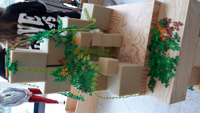 V úterý se 6.B zúčastnila workshopu v Národní galerii ke Dni architektury. Žáci se inspirovali stavbami ze světa přírody i lidskými světově známými stavbami, kde se snoubí architektura s přírodou.