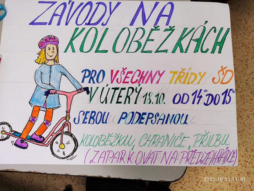 Dne 18.10. se ve školní družině uskutečnily závody dětí na koloběžkách. Níže si můžete prohlédnout fotky, jak akce probíhala.