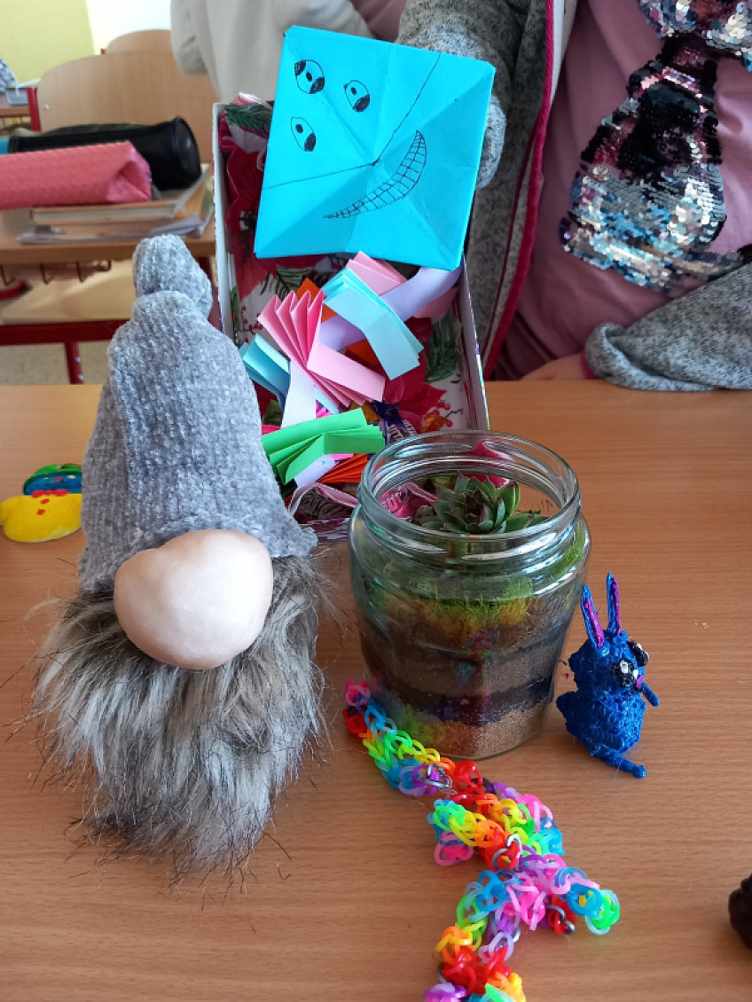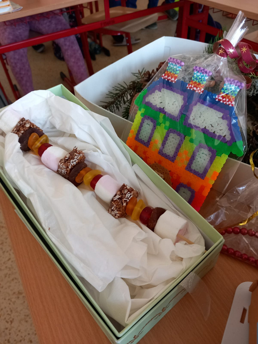 Ve 4.A se losovala tombola. Podmínkou dárku bylo,že musí být vlastnoručně vyroben. Podívejte se,jaké krasné výrobky děti vytvořily.
