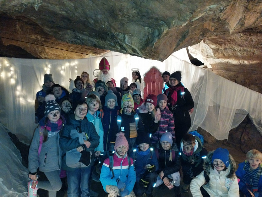 Žáci ze 4. B a 4. C navštívili v předvánočním čase jeskyně. Naštěstí kromě čertů v pekle viděli i Mikuláše a anděly v nebi... Byl to skutečný zážitek octnout se ve strašidelně nasvícených chodbách.