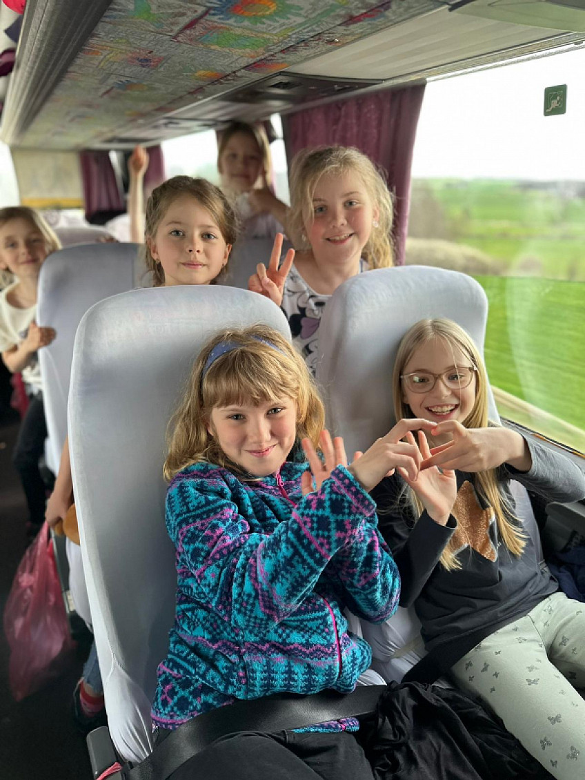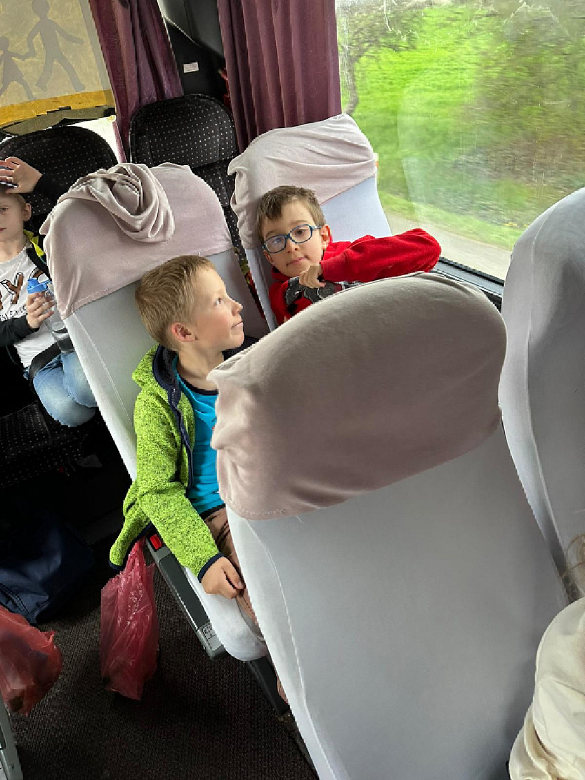na autobusu, který veze děti na školu v přírodě, došlo k poruše, kterou teď opravují na čerpací stanici. Děti jsou v pořádku, mají k dispozici toalety a v autobuse se topí.