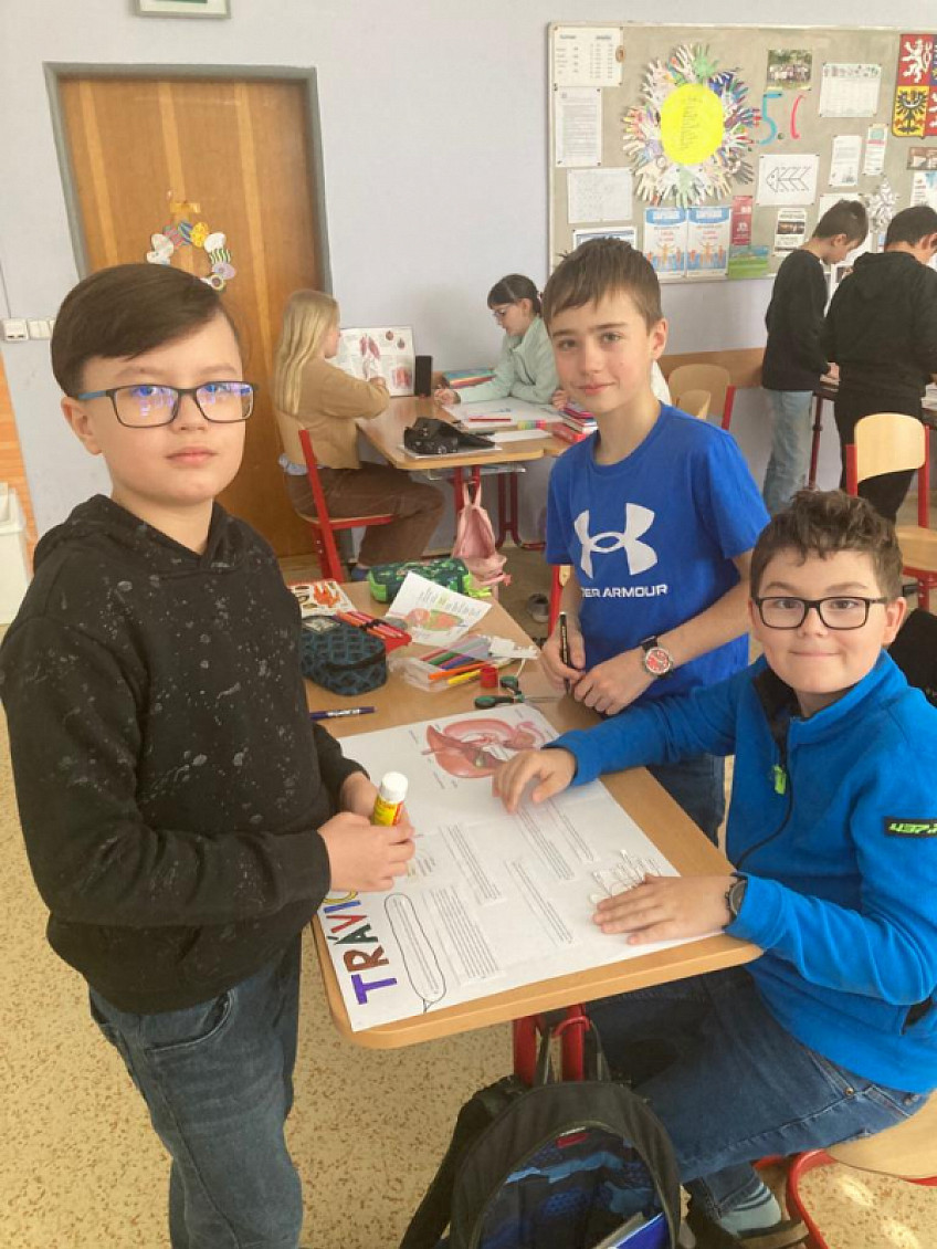 Dnes jsme měli projektový den, který se zabýval evolucí. Nejprve jsme zhlédli dokument s názvem Zrození člověka, kde jsme viděli postupný vývoj od buňky až po současnost. Nabyté informace jsme si otestovali v testu a poté jsme se pustili do výroby výukových plakátů jednotlivých soustav. V následujících týdnech budeme jednotlivá témata probírat do větší hloubky a prezentovat svým spolužákům.