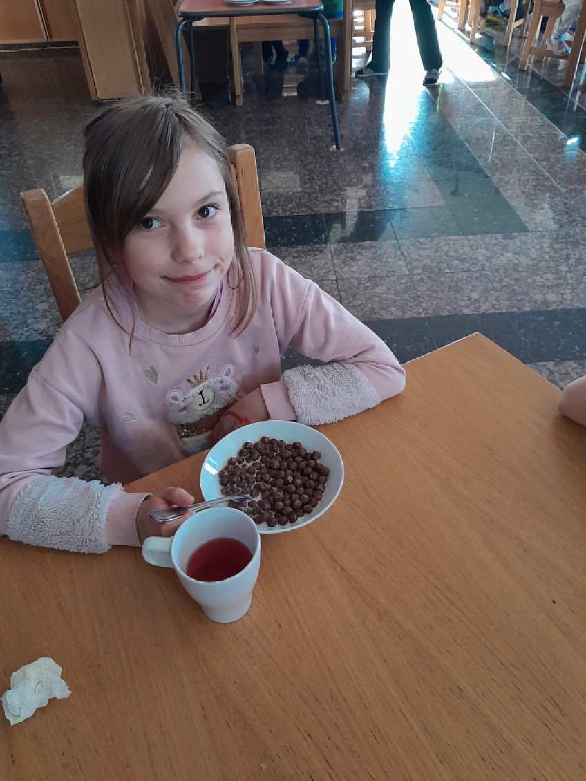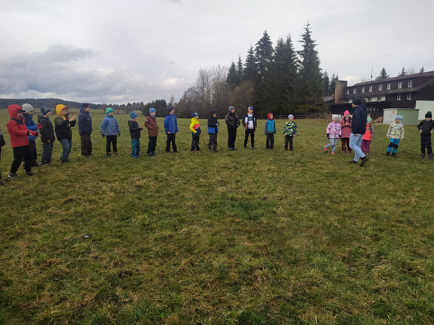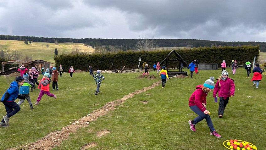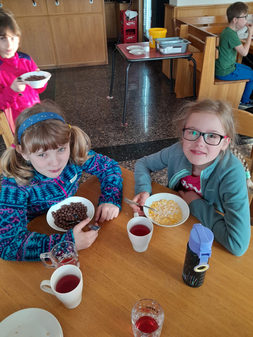 Počasí po dnešní výborné snídani přálo.Děti se vypravily ven prozkoumat okolí a zahrát si různé hry.Po skvělé rajské s knedlíkem mají odpolední klod a chystají se na odpolední program.
