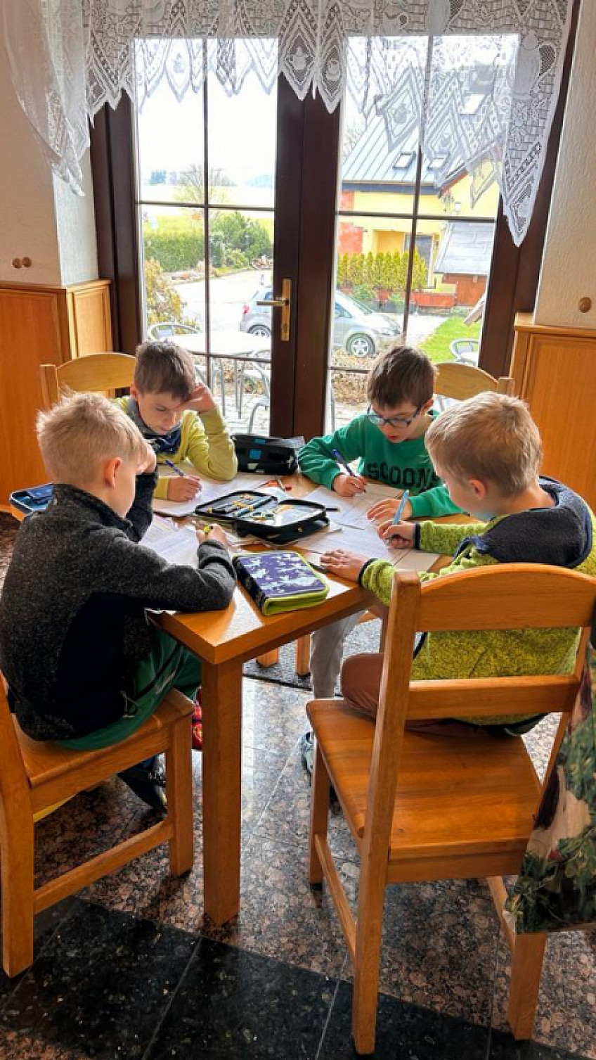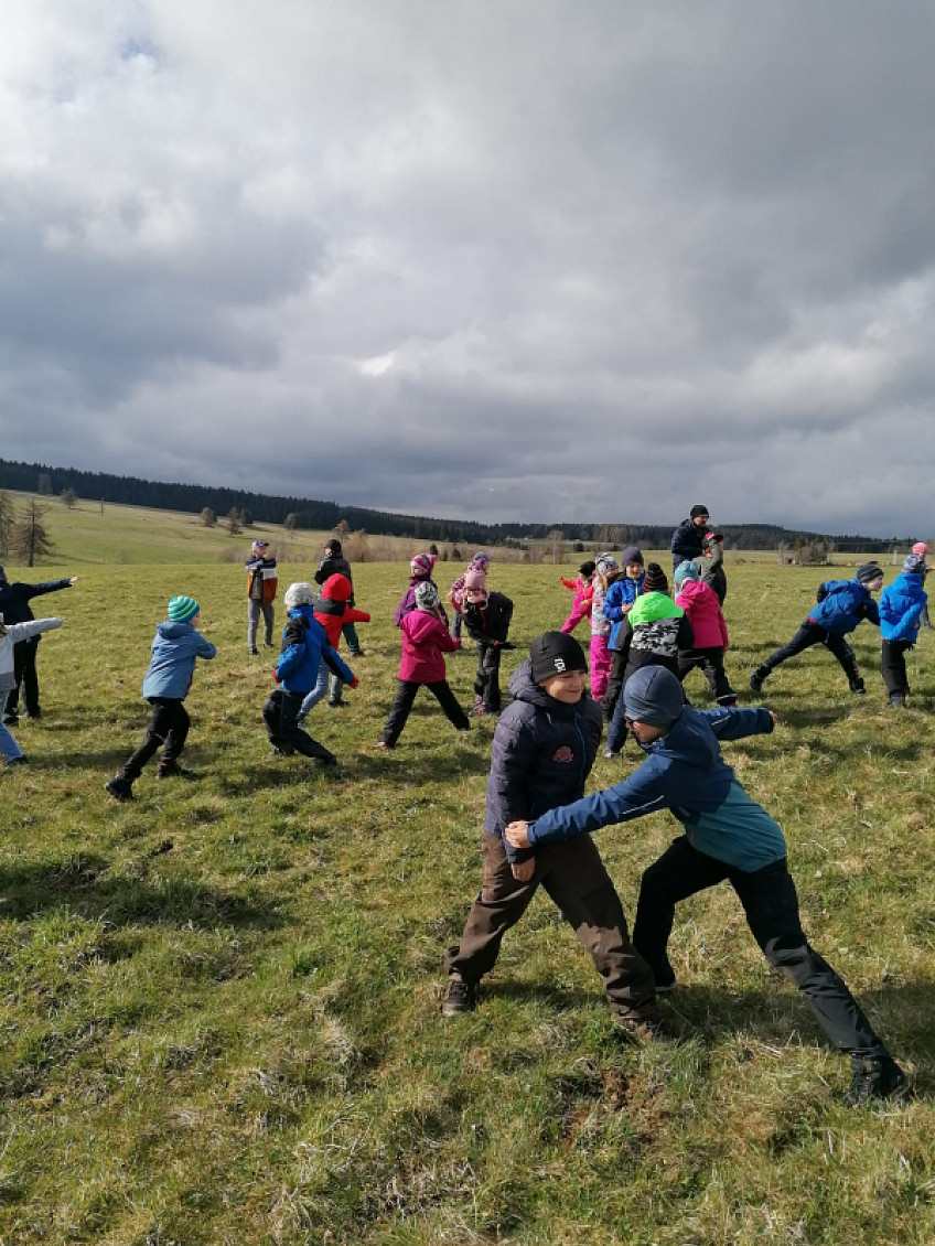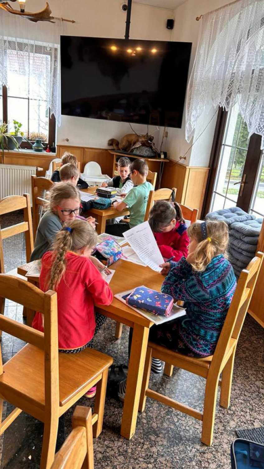 Počasí po dnešní výborné snídani přálo.Děti se vypravily ven prozkoumat okolí a zahrát si různé hry.Po skvělé rajské s knedlíkem mají odpolední klod a chystají se na odpolední program.