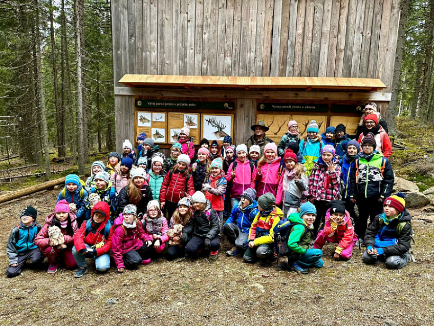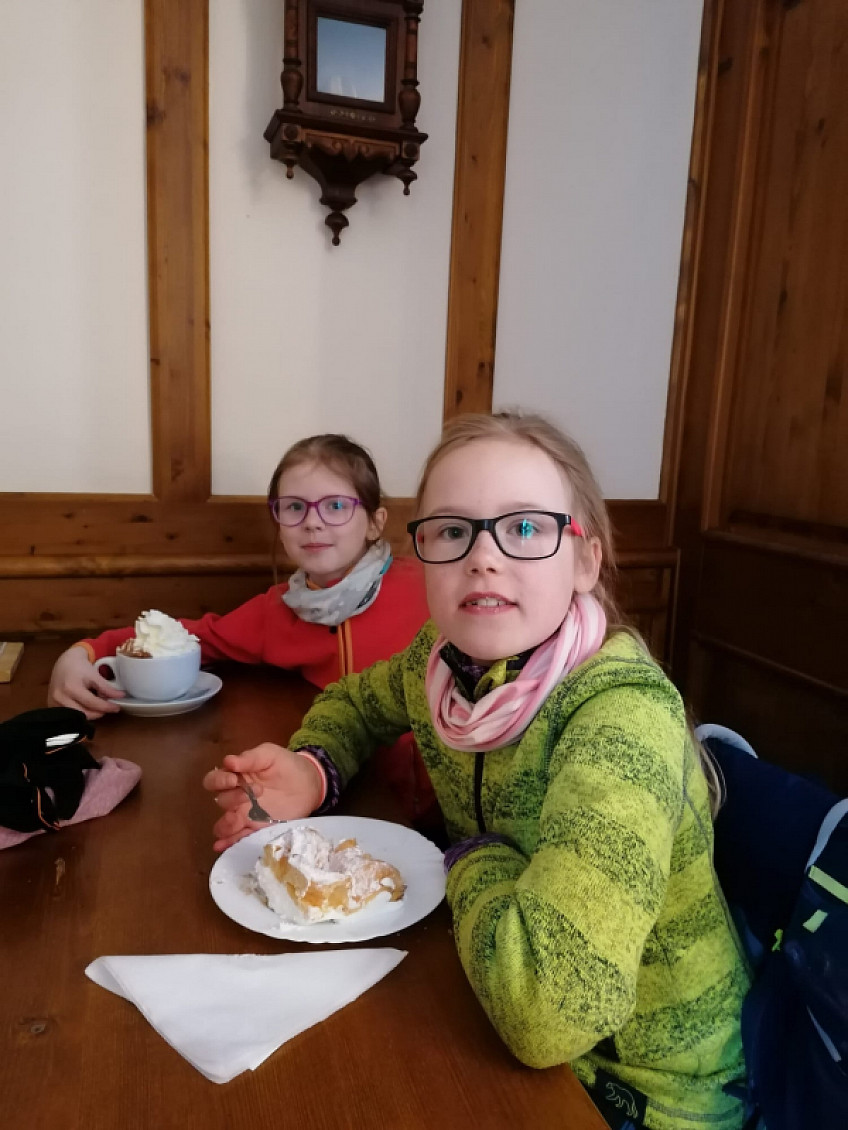 Ve středu se děti vydaly na výlet na Kvilku. Cestou si nakoupily v info centru. Průvodce je provedl výběhem s jeleny. Na závěr se občerstvily v cukrárně.