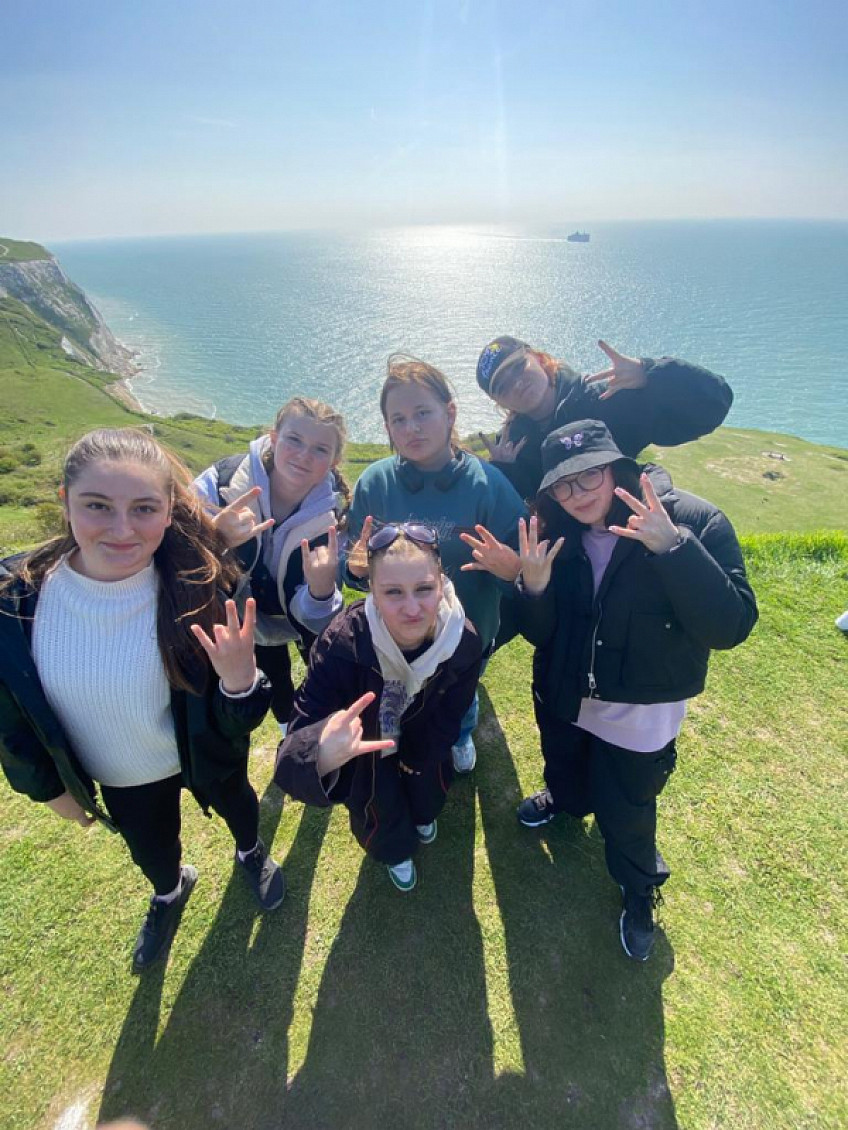 Vstávali jsme ještě za tmy. Hotel F1 byl sice skromný ale útulný, a tak se nám moc vstávat nechtělo. Dokonce jsme někteří zaspali. Naštěstí nás učitelé neustále počítají. Už chápeme proč. Snídaně proběhla bleskově a než jsme se nadáli vjížděli jsme na trajekt. Asi po hodině cesty, nad obzorem v ranním slunci začaly bíle zářit útesy v Doveru. Tolikrát jsme o nich v hodinách angličtiny slyšeli. Také jsme se po nich mohli projít a samozřejmě se tam vyfotit. No a pak tradá do Portsmouth v jižní Anglii. Strávili jsme tam celé odpoledne v námořním přístavu, který je muzeem pod širým nebem. Teď už víme, jaký byl život na moři, jak se staví lodě, jak se jmenovala vlajková loď Jindřicha VIII, kolik má britské námořnictvo letadlových lodí a co je dominantou Portsmouth. Všechno Vám budeme vyprávět a také o tom, co si právě povídáme s našimi dočasným rodinami. Moc Vás všechny zdravíme.