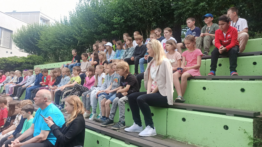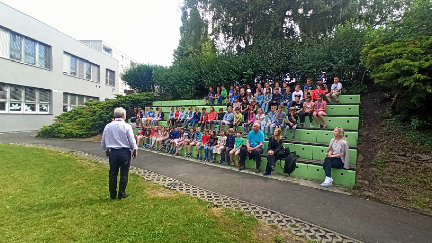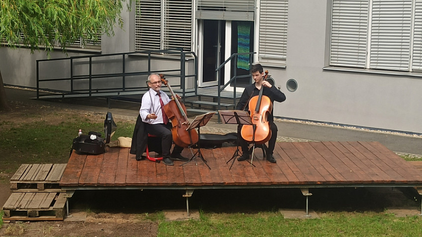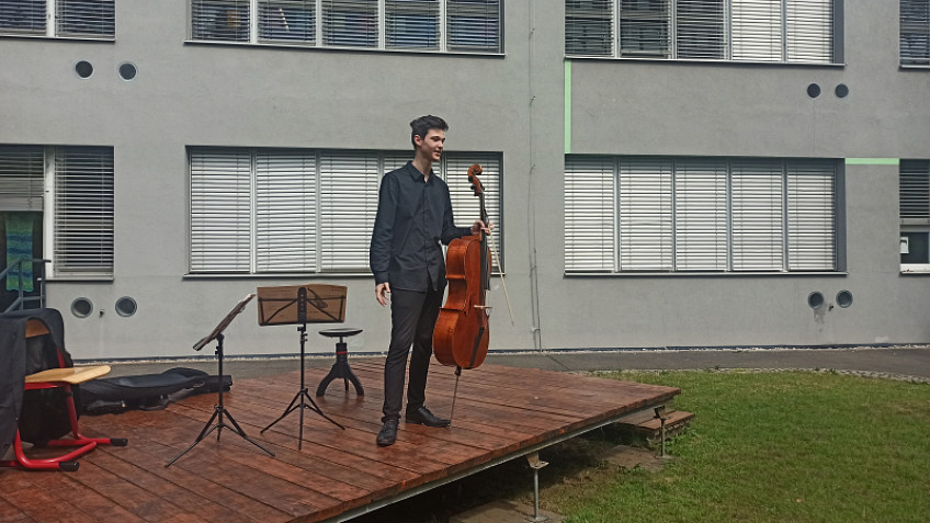 S podporou Města Prahy 14 naši školu ve čtvrtek 8. června navštívil pan profesor Pavel Verner se svým žákem Vladimirem Zwollodinem z Pražské konzervatoře. Žákům prvních, druhých a třetích tříd poutavou formou představili violoncello a zároveň dětem zahráli skladby barokní, klasicistní, jazzové. Pan profesor nabídl také možnost vyzkoušet si zahrát na struny violoncella. Na závěr jsme si poslechli známou skladbu z večerníčku, kterou všechny děti poznaly. Děkujeme za krásný zážitek z venkovního koncertu!