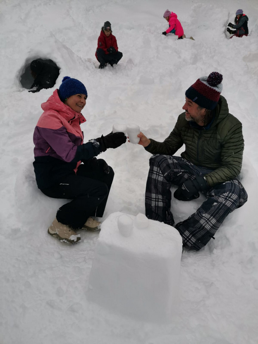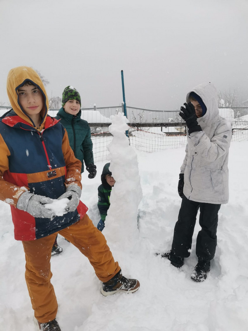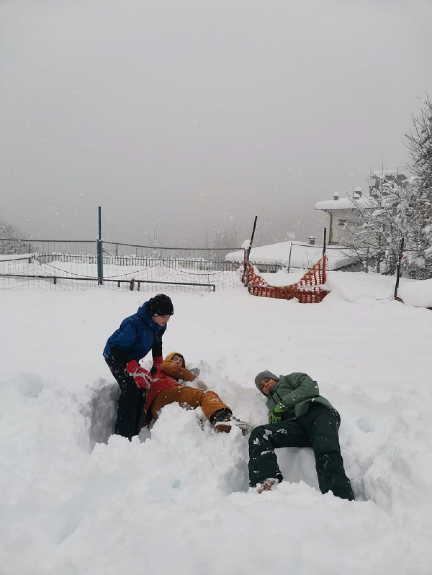 Přes noc a během dne nám napadlo kolem 50cm čerstvého těžkého sněhu, na kterém se nedalo pořádně ani lyžovat. My jsme to však zvládli a máme se skvěle. Odpoledne proběhly sněhové hrátky. Foto přikladáme.