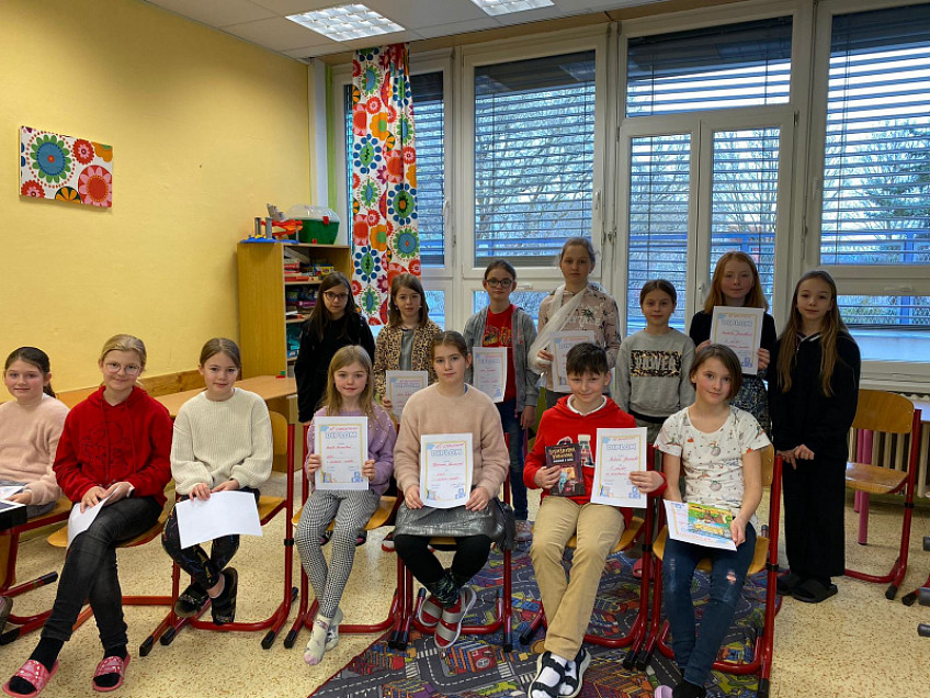 Školní kolo recitační soutěže 4. tříd proběhlo v pátek 23.2. 2024. Všichni recitátoři odvedli výborné výkony. Porota měla opravdu nelehký úkol. V soutěži nakonec zvítězili: Petr Gazdačko, Natálie Janečková a Amy Gregovská. Všem účastníkům soutěže gratulujeme.