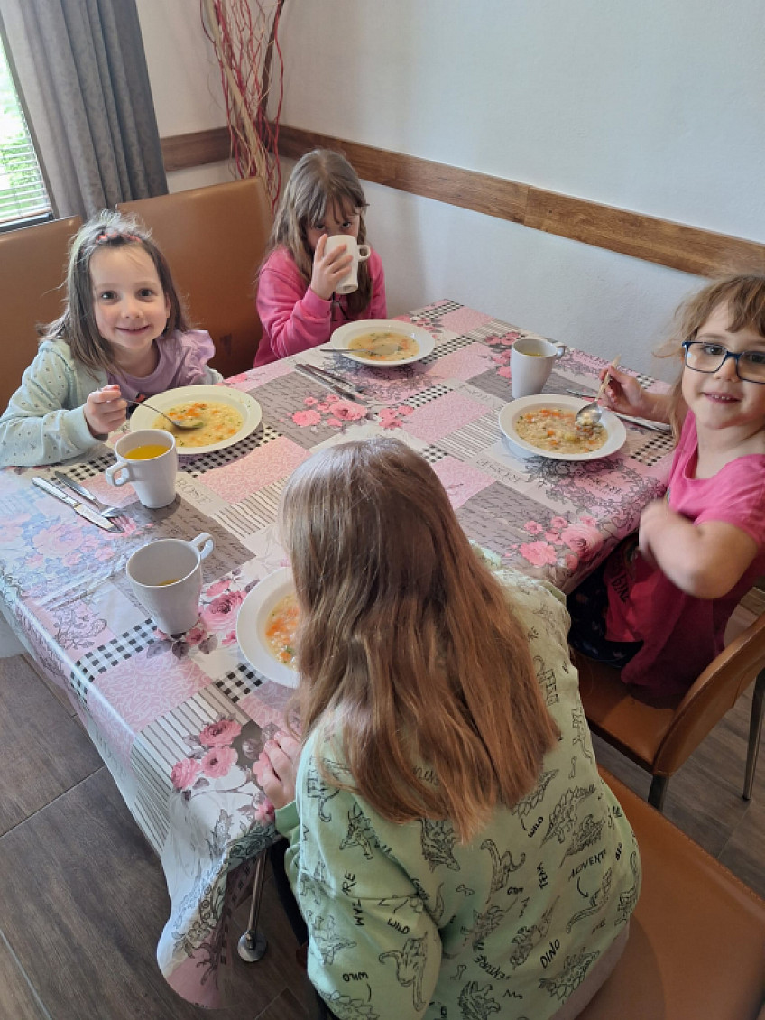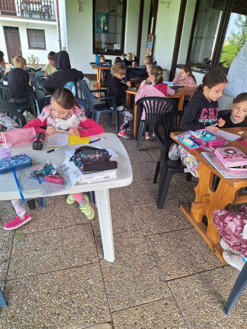 Dnešní výlet byl super a bez deště na zámek Humprecht. Možná je nám malinko smutno..... ale odpolední hry jsou super.