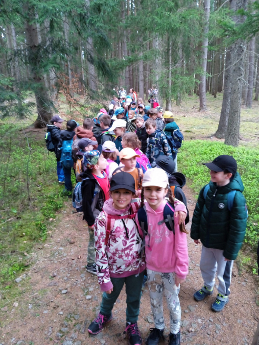 Zdravíme ze školy v přírodě! Děti jsou v pořádku, po dopoledním vyučování a poledním klidu pokračovaly v tématických hrách. Počasí nám přeje, Děti tráví celá odpoledne venku na louce a v lese.