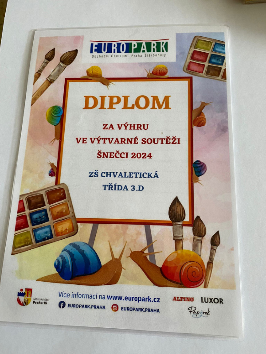 Naše škola se pravidelně účastní soutěže "Malujeme s Europarkem" a tentokrát se povedlo vyhrát naší škole, konkrétně žákům 3.D, kterým moc blahopřejeme!