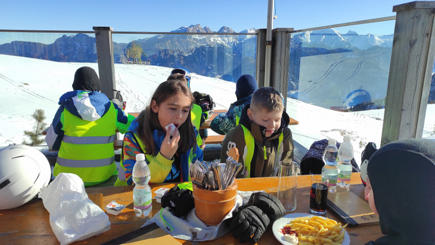 Další den skvělého lyžování je opět za námi. Slunce na jasně modré obloze po celý den a krásně upravené sjezdovky. Není co více dodat, lyžaři si nemohou přát nic hezčího. Odpoledne jsme utratili nějaká ta éčka, za chvíli večeře a večerní program.