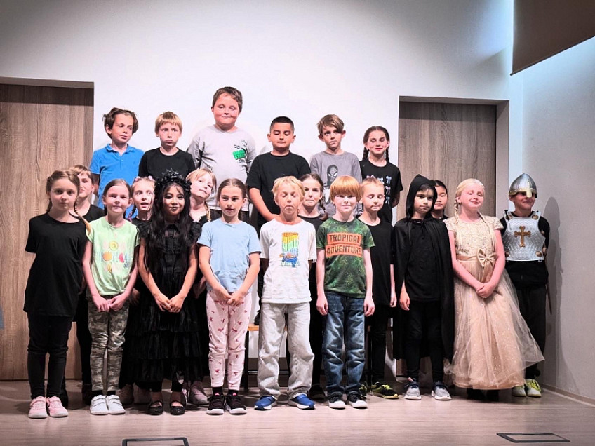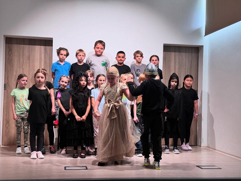 Během tří měsíců jsme vše nazkoušeli a 16.6.2025 jsme se i s rodiči sešli u nás ve školním divadle, abychom jim tu naši inscenaci ukázali. Bylo plno! Víc než plno!