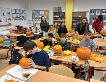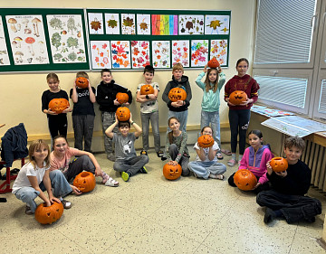 V rámci výuky anglického jazyka se seznamujeme i s kulturou anglicky mluvících zemí. Halloween je velice populární, a tak si i naše děti užívají dlabání dýní tzv. Jack O´Lanterns.