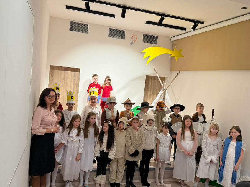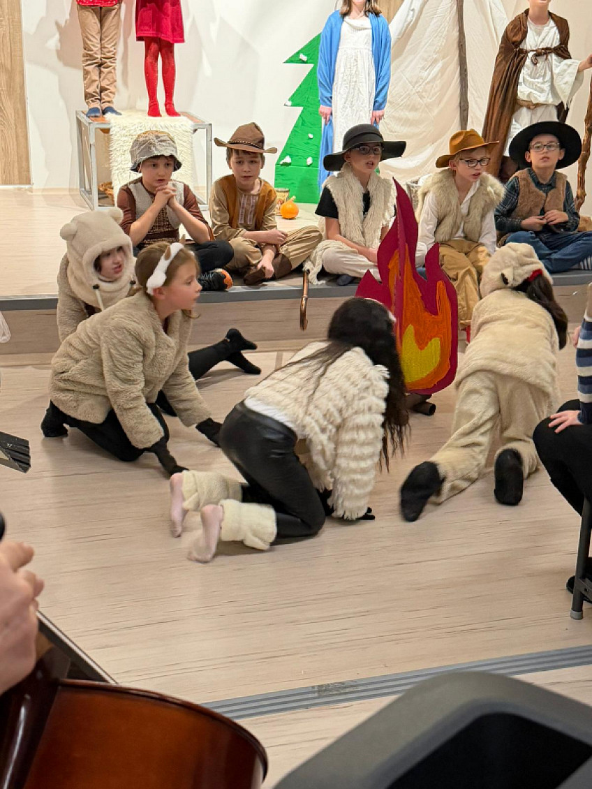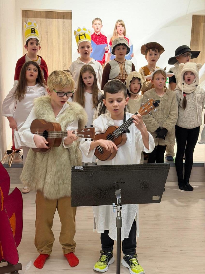 Třída 3.B si připravila pro své blízké vánoční představení. Vánoční příběh byl plný andělů, oveček a pastýřů. Nemohli chybět ani tři králové. Ti všichni se společně vydali za Marií a Josefem a malým Ježíškem. Po představení se někteří malí hudebníci nebáli zahrát velkému publiku na hudební nástroje. Vánoční atmosféru v závěru představení umocnily děti společnou písní Čas vánoční.