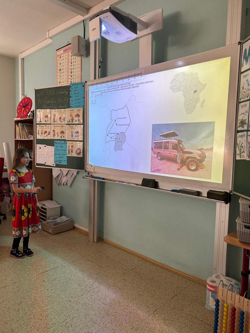 Františka B. ze 3.B dnes celé třídě prezentovala její týdenní pobyt s maminkou v Ugandě. Její prezentace byla úžasná. Děkujeme, Františko! Tvoje 3.B