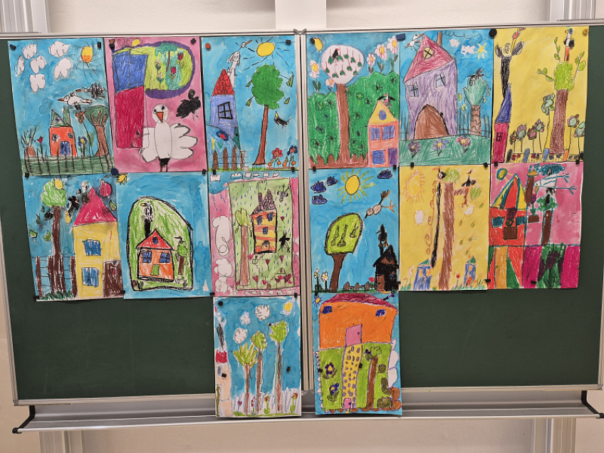 Děti z 1.A představují své krásné jarní obrázky.
