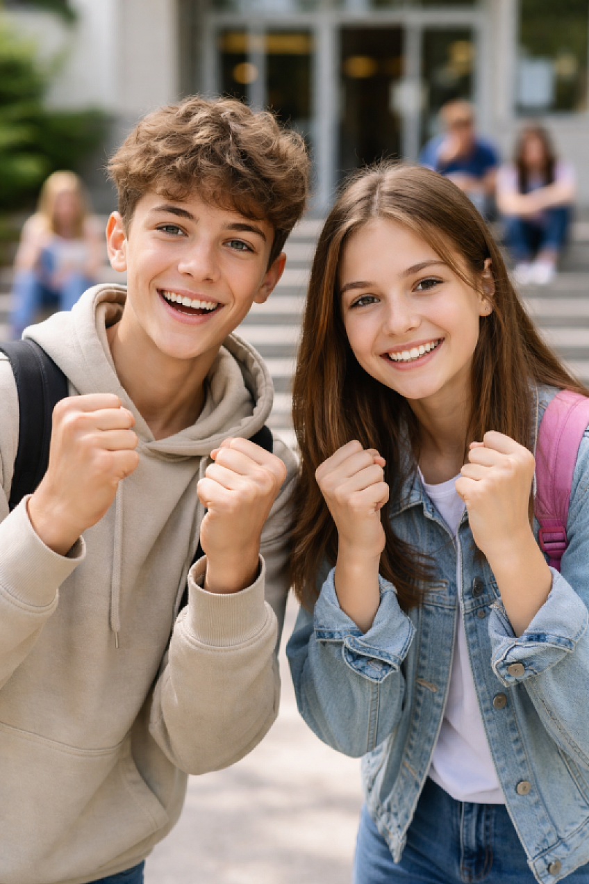 Milí deváťáci, zítra a v pondělí vás čekají přijímací zkoušky na střední školy. Všem vám přejeme, abyste byli úspěšní, nervozitu ještě ráno nechali za dveřmi domova a plně se soustředili na zadání v testech.
